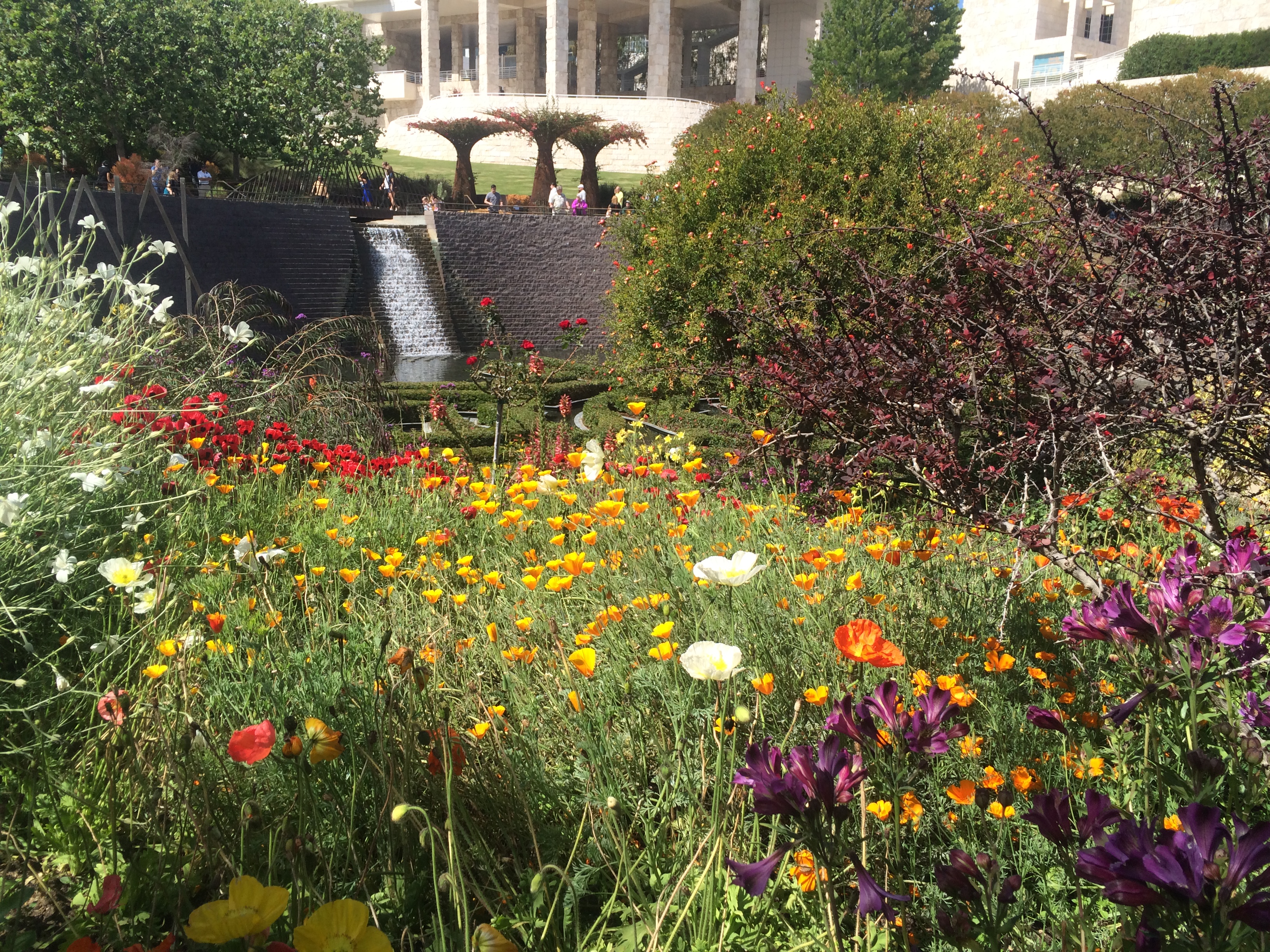 The next day we headed into the city of LA and up above the smog to The Getty Center. The Getty is an amazing center for the arts that includes astounding architecture, beautiful gardens, a massive collection of art, and a major art research library, conservation laboratory, and grant program. And the amazing thing? It’s free to everyone.