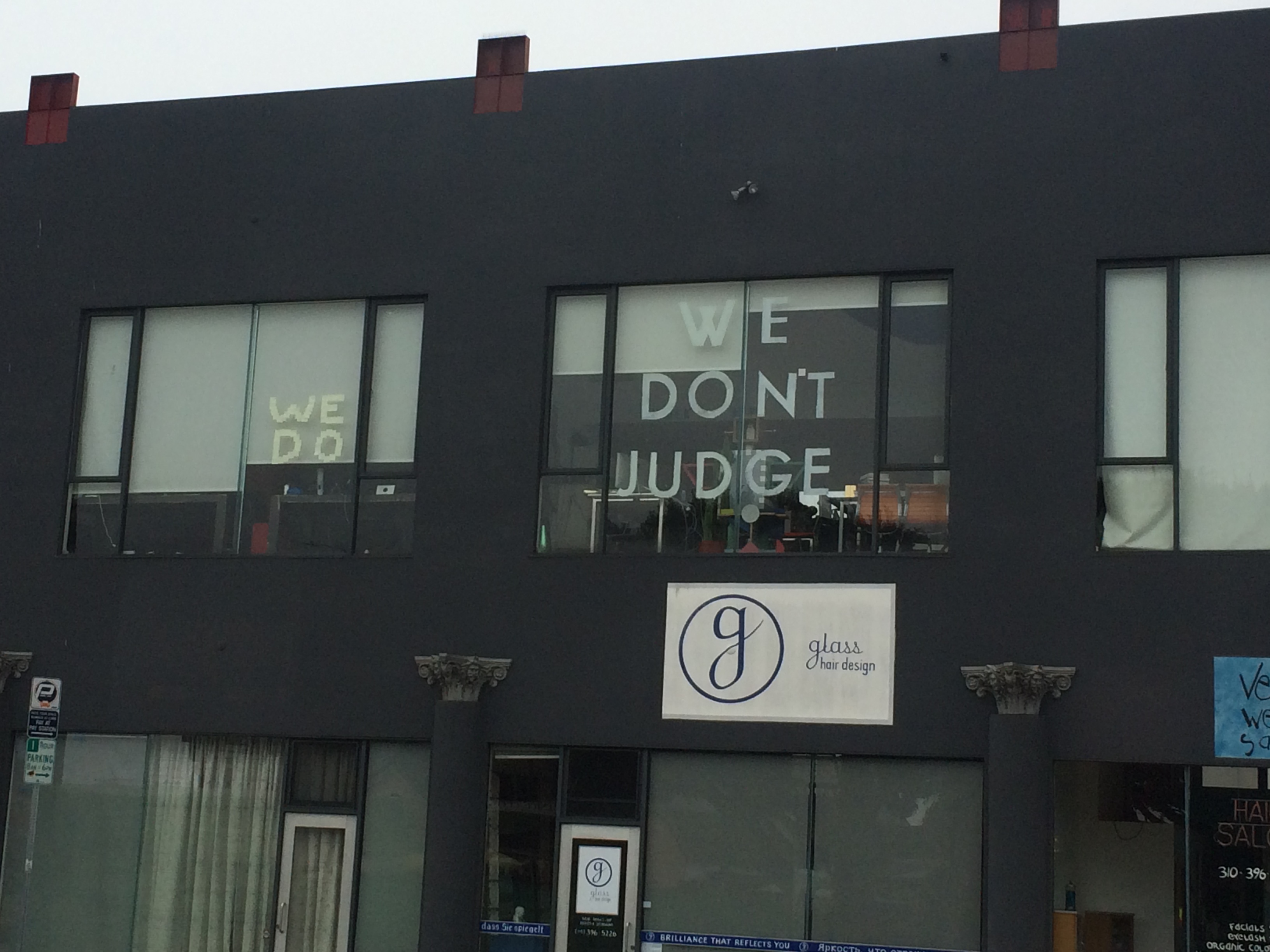We then cruised through Beverly Hills past 102-million dollar megamansions (nope) and walked around the ridiculously exclusive Rodeo Drive shopping area (super nope). Though I did see an original Salvador Dali sculpture for sale for only $40,000… I guess I’ll have to wait until I’m $40,000 richer. Next we headed to the original LA Farmer’s Market for lunch, which was a crazy chaotic never-stopping flow of people from stall to stall, with an endless supply of every type of food you could think of. Slightly overwhelmed by the amount of options and long lines, I went for the tacos followed by some old-fashioned rainbow sherbert. It was a solid choice. I couldn’t resist capturing this hilarious exchange on these windows as we drove to our next destination: