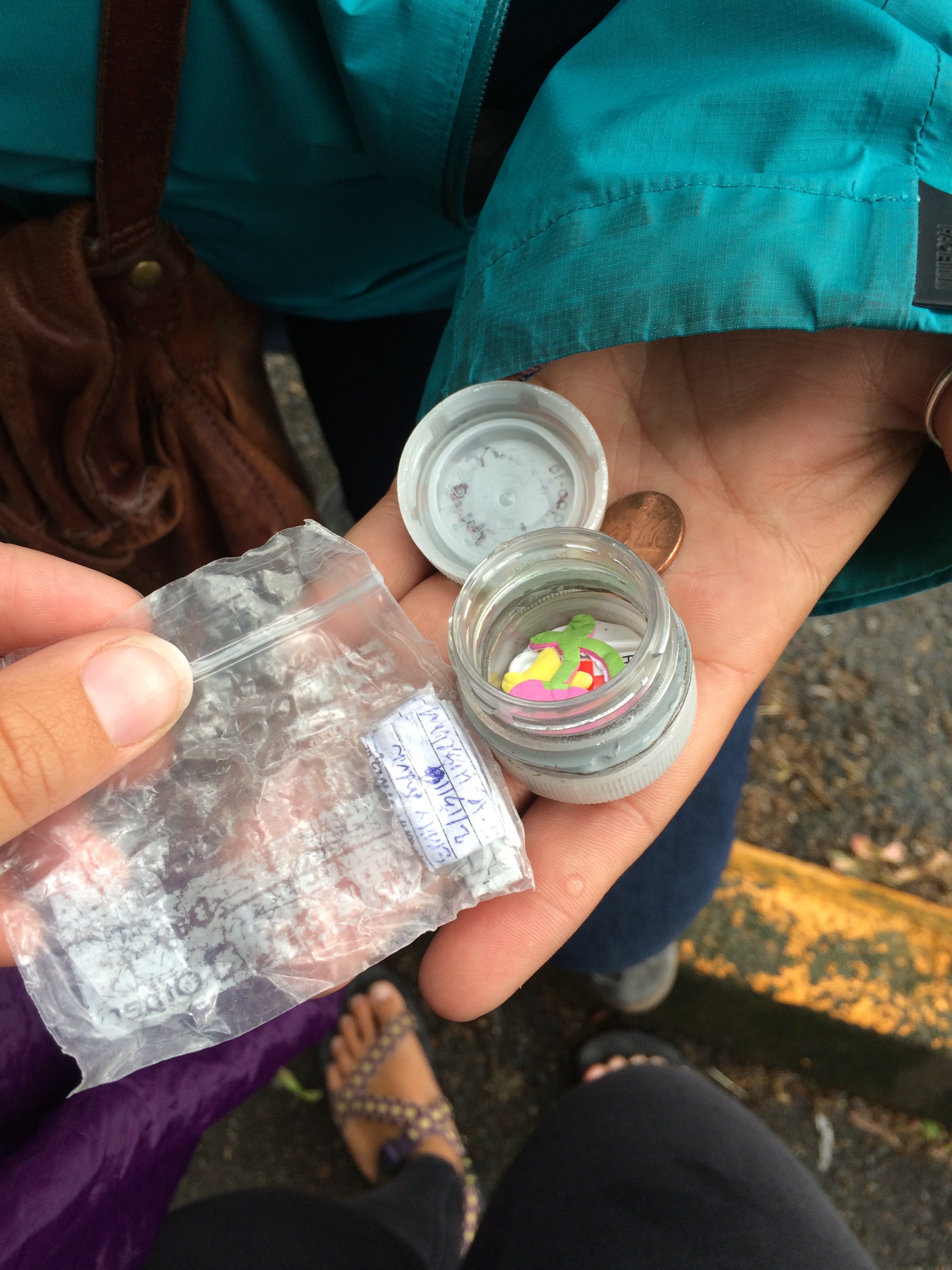 And after some unfortunate accidental sticky contact, Shelby and I found the cache!