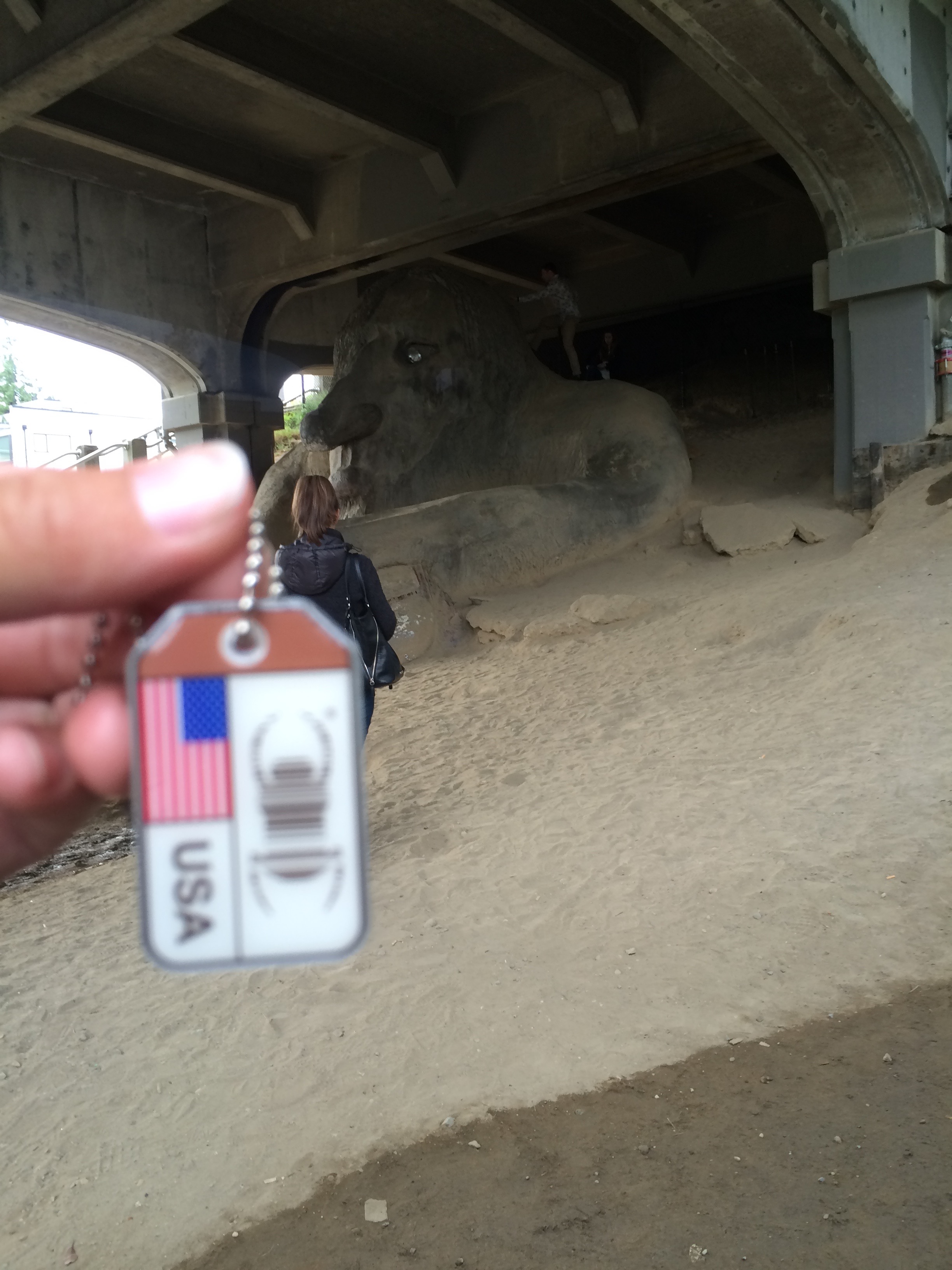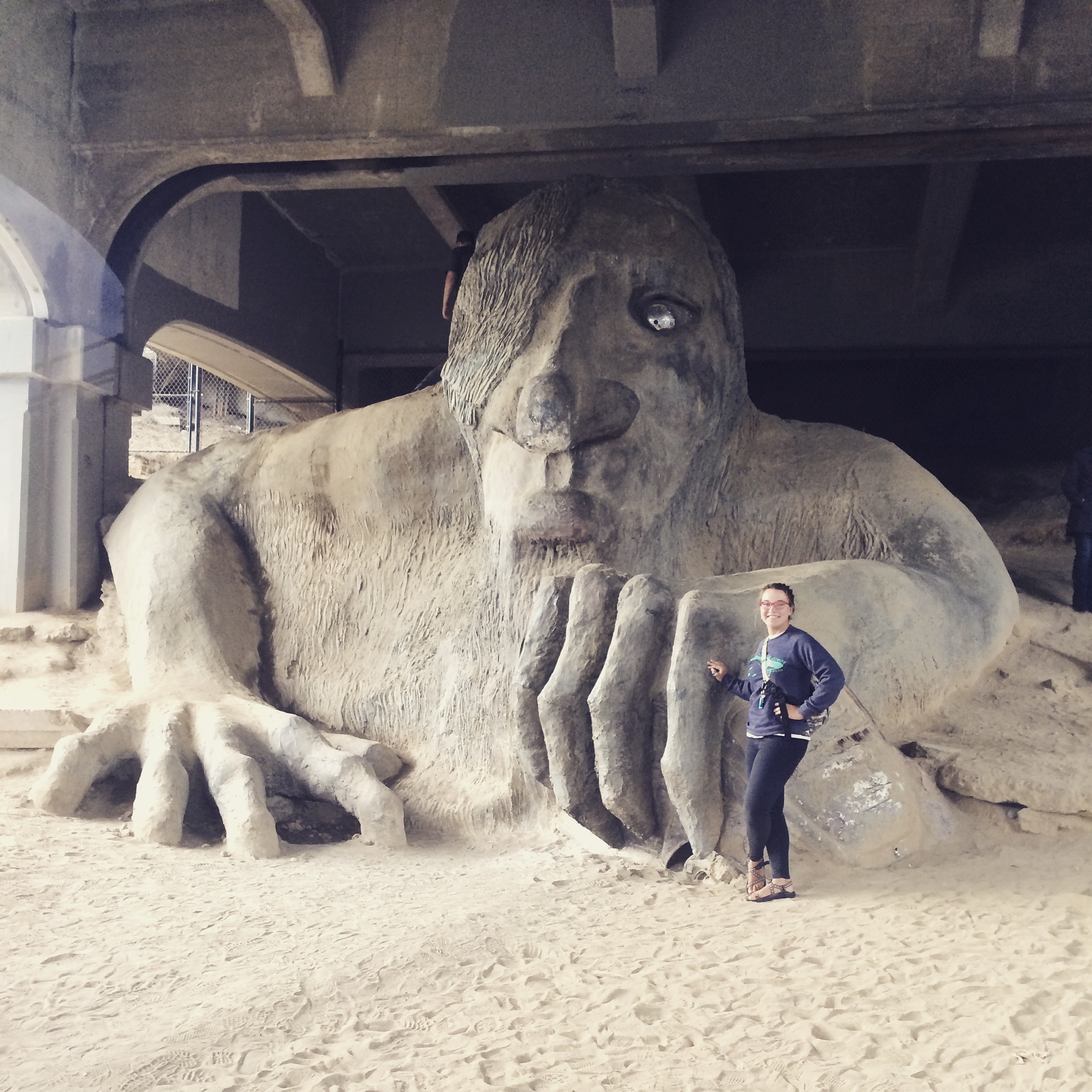 Then we ran all over downtown Seattle seeing all the sights we could! Here’s the Fremont Troll, an unbelievable art instillation under a bridge at the so-called “center of the universe”. The scale of this piece is incredible – the VW bug in its left hand is an actual car!