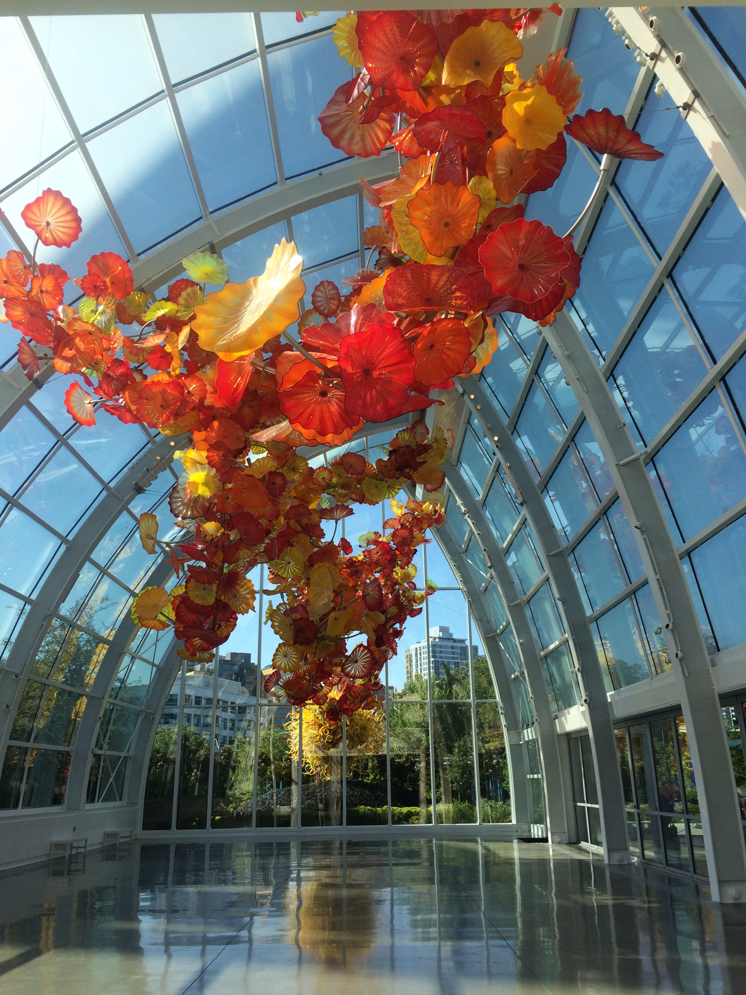 I took this picture from the Chihuly Garden and Glass, and incredible museum at the base of the Space Needle. All of the artwork – most of it consisting of hundreds of pounds of glass and metal – is the brainchild of one individual, Dave Chihuly. Working with a team of glassblowers and many other workers, he has permanent and temporary installations all over the world.