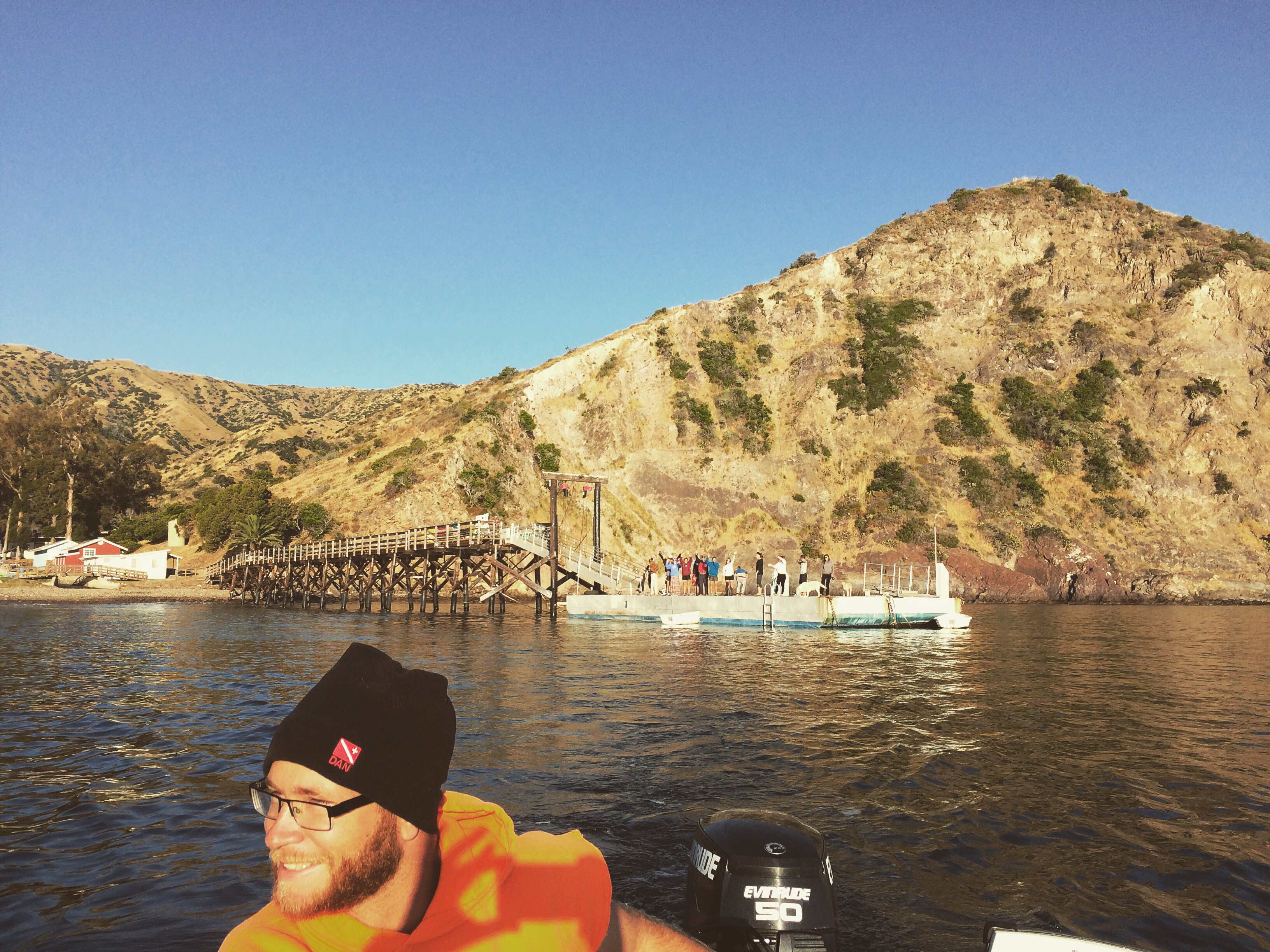 The goodbye committee at Toyon, and Morgan motoring me to the ferry